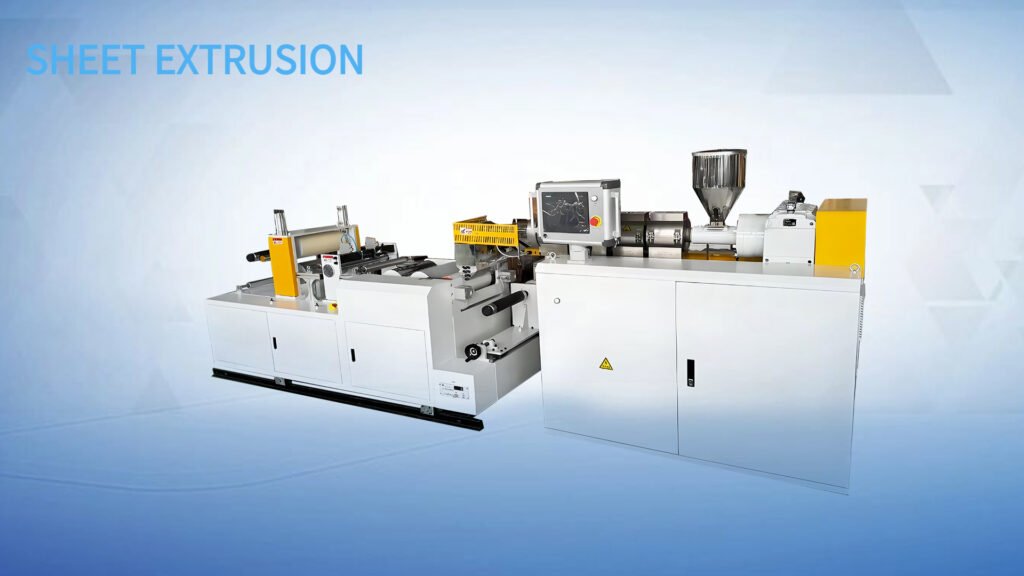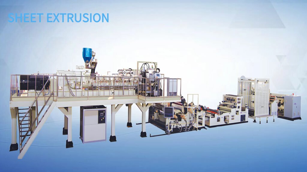 A sheet extrusion line is the core equipment in plastic processing for the continuous production of plastic sheet (typically ranging in thickness from 0.1mm to 15mm). Its fundamental operating principle involves a rotating screw within a heated barrel that conveys, compresses, melts, and plasticates solid plastic pellets (or powder) into a homogeneous viscous-flow-state melt.